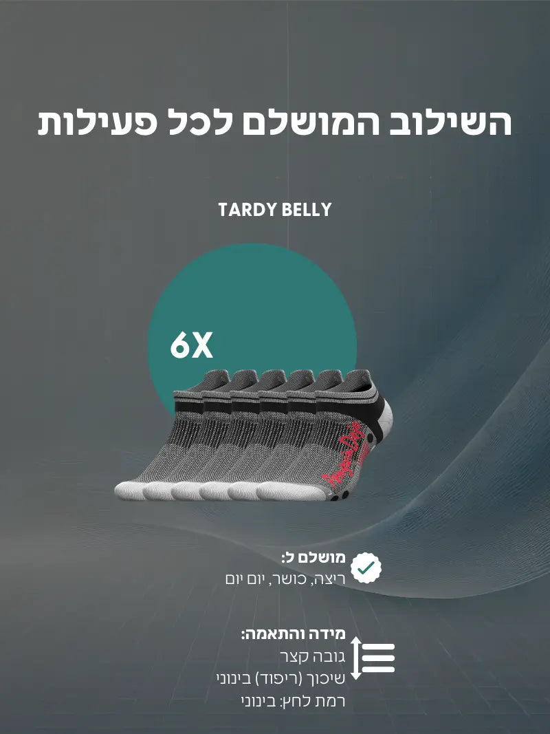 6 זוגות של Tardy Belly - גרבי ריצה קצרות צבע אפור (מידה)