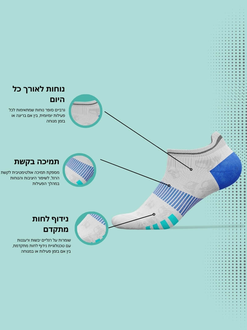 • שמירה על רגליים יבשות ונוחות לאורך כל היום