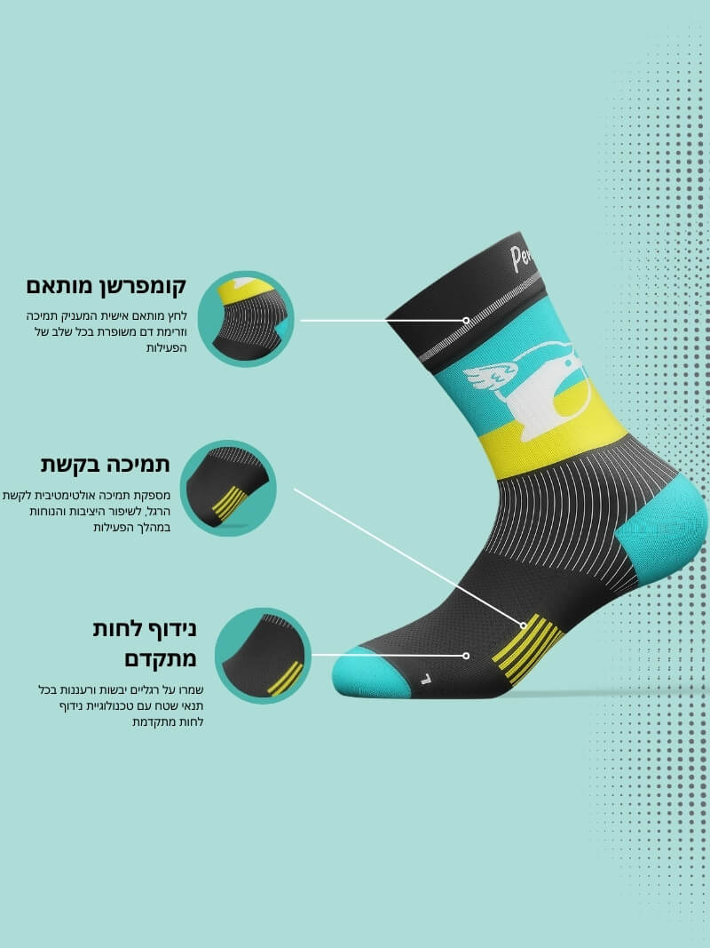 - נוחות שנשארת לאורך כל הדרך: בין אם אתם רצים, רוכבים, או בטיול ארוך, הגרביים שומרות על רגליים נינוחות ויבשות.