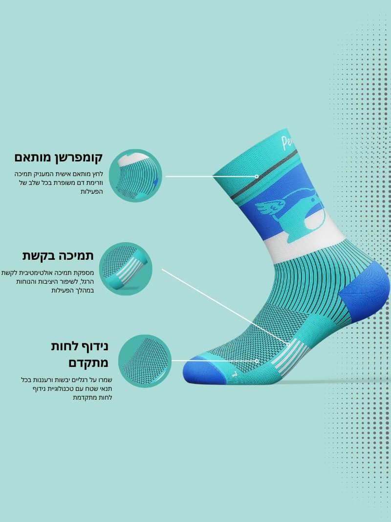 • נוחות שנשארת לאורך כל הדרך: בין אם אתם רצים, רוכבים, או בטיול ארוך, הגרביים שומרות על רגליים נינוחות ויבשות.