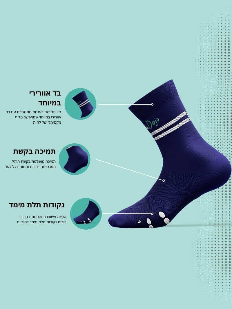 • מניעת יבלות ושפשפות: הגרביים עוטפות את כף הרגל ומספקות תמיכה מדויקת שמונעת אי נוחות, כך שתוכלו להתמקד רק בביצועים שלכם.