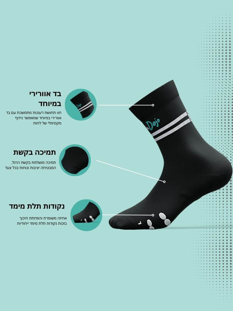 - תחושת נוחות טבעית לכל פעילות: גרביים דקות במיוחד שמעניקות מגע ישיר עם הנעל, מנדפות זיעה ושומרות על רגליים יבשות ונעימות. מושלמות לריצה, רכיבה, אימונים וכל פעילות יומיומית.