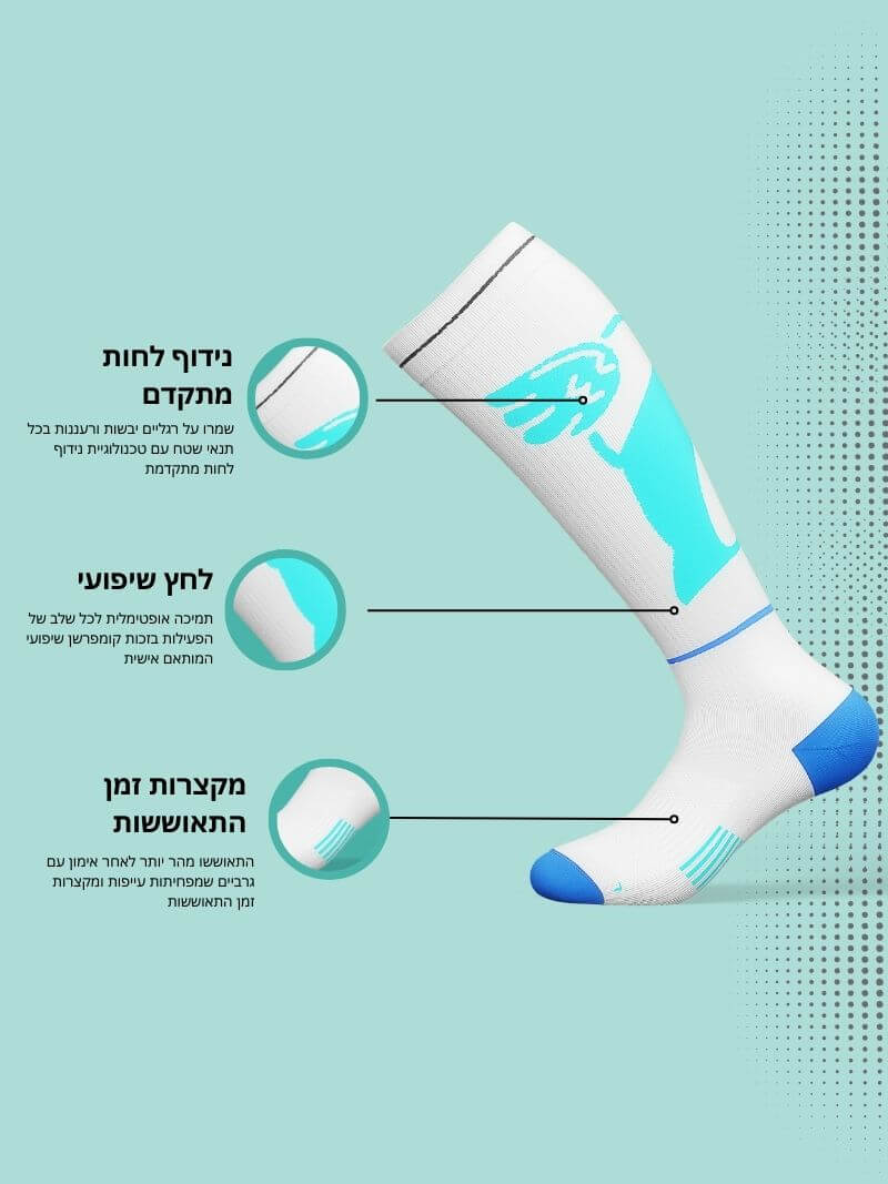 • תמיכה בשרירי התאומים למניעת פציעות, שברי מאמץ וקיצור זמן התאוששות.