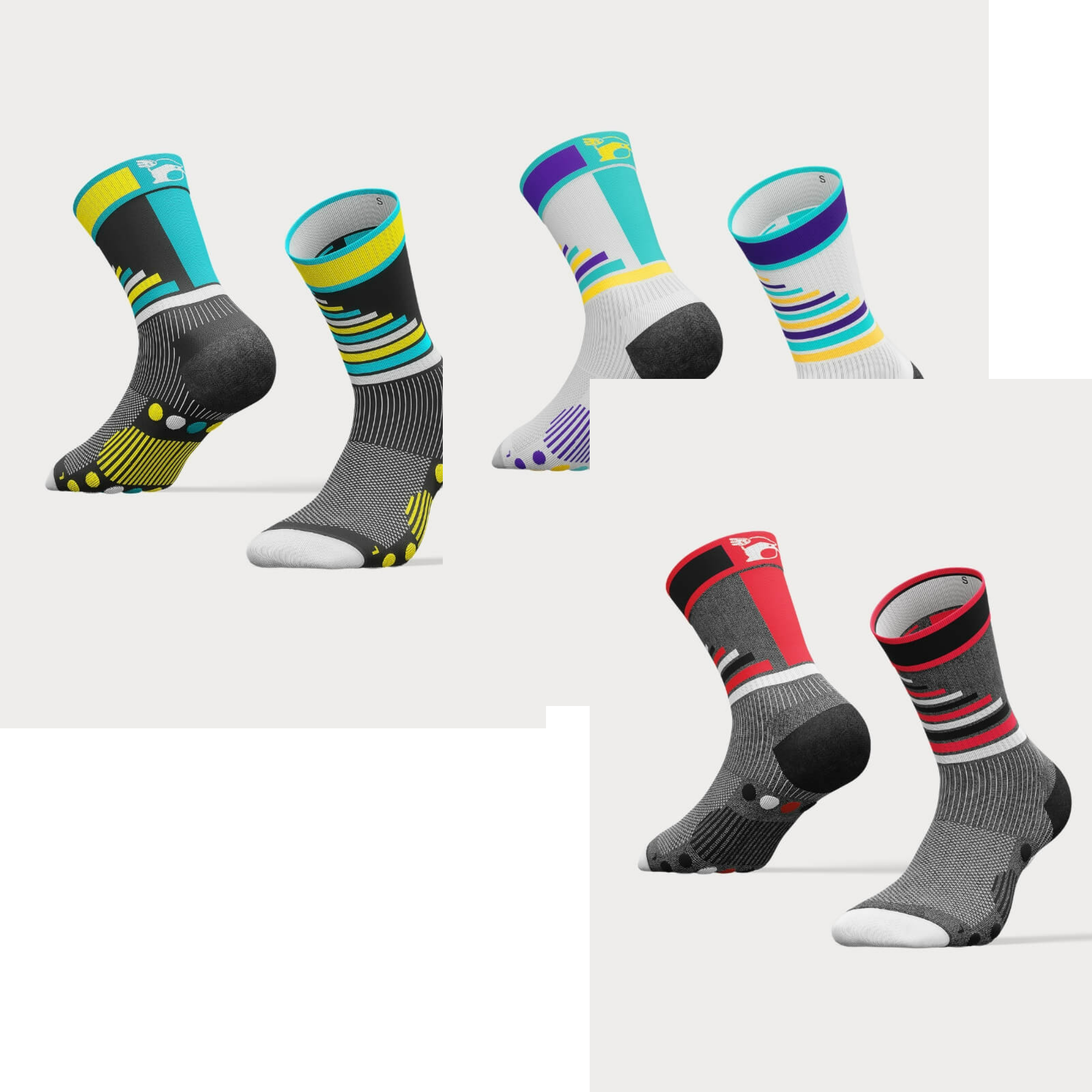 עיצבנו את הגרביים כך שהם לעולם לא יחליקו בנעל בזכות רצועות לחץ ייחודיות מסביב לקשת. הרצועות מאפשרת לזרז את החזרת הטונוס, לריצה בריאה הרבה יותר.